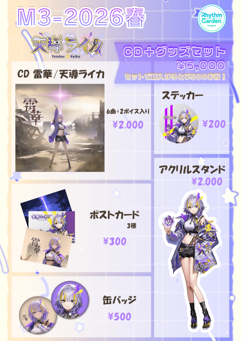 2026.04.26開催のM3-2026春にて、天導ライカの1st EP「雷華」を頒布いたします!I-18b リズプロブース